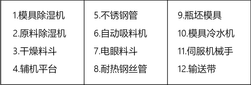 •瓶坯模具、機械手、輔助設備組合方案推薦;