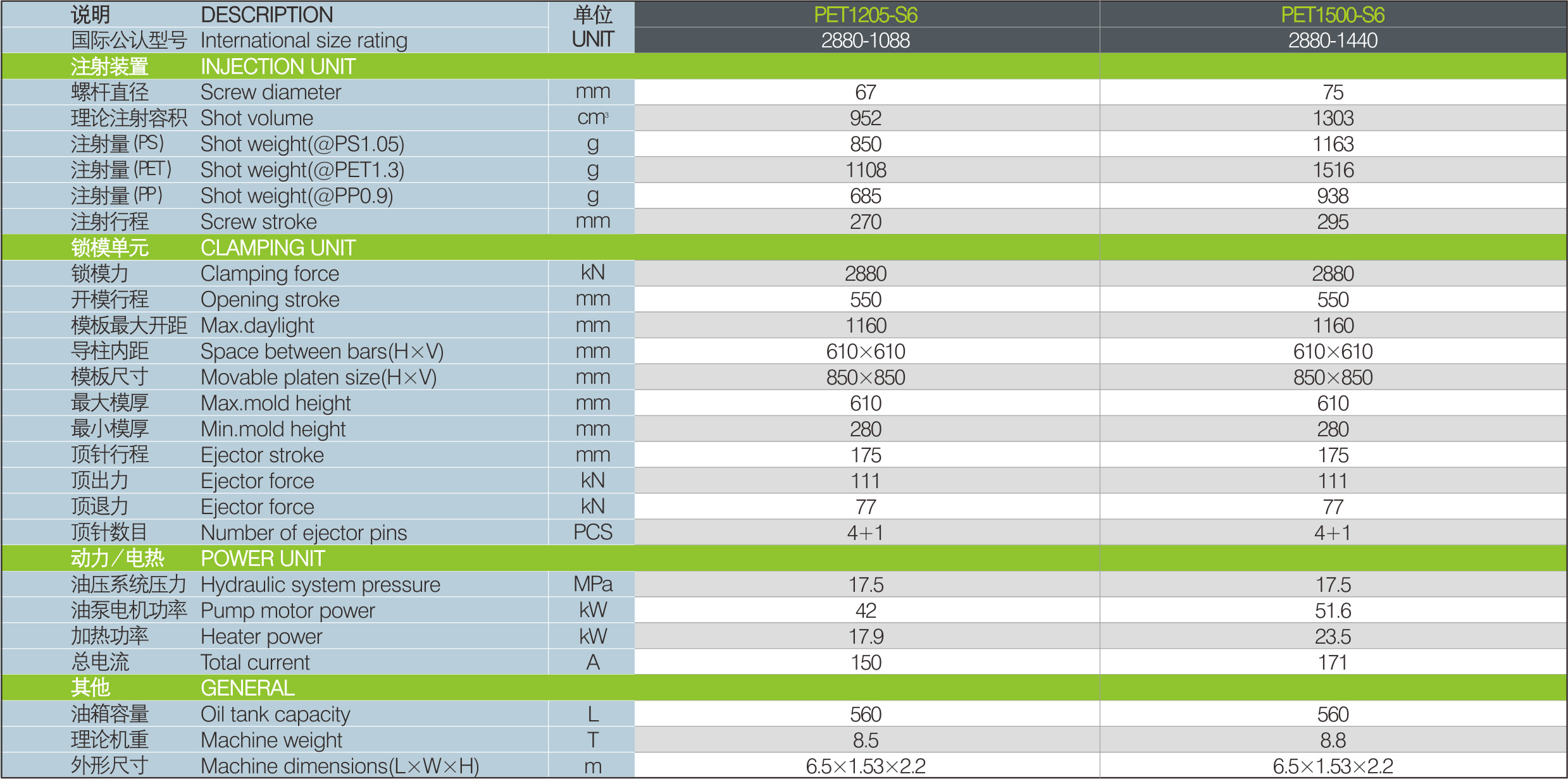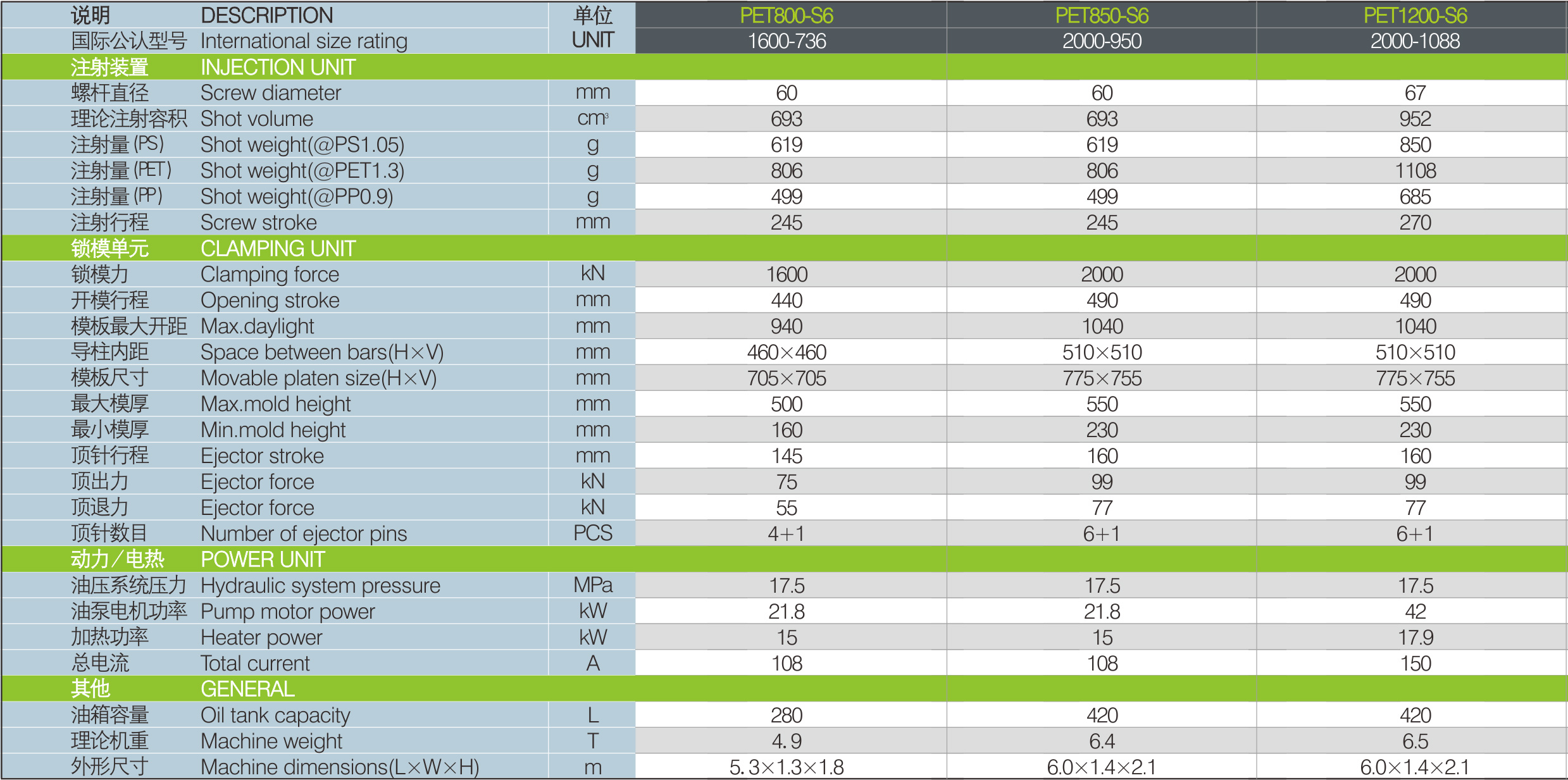 提供PET瓶坯全方位完善而成熟的解決方案,注射量從800-4500g的50多款不同規(guī)格型號PET瓶坯專用注塑機。
