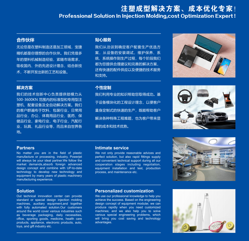 廣東寶捷精密機(jī)械股份有限公司成立于2000年,總部坐落于廣東省佛山三水高新技術(shù)工業(yè)園,擁有現(xiàn)代化廠房十多萬平方米,引進(jìn)了日本Mitsubishi,OKUMA、韓國DOOSAN公司的數(shù)控加工中心(CNC)等先進(jìn)生產(chǎn)設(shè)備,是一家集研發(fā)、制造、銷售、售后服務(wù)于一體的注塑、吹瓶等專用塑料機(jī)械的高新技術(shù)企業(yè)。